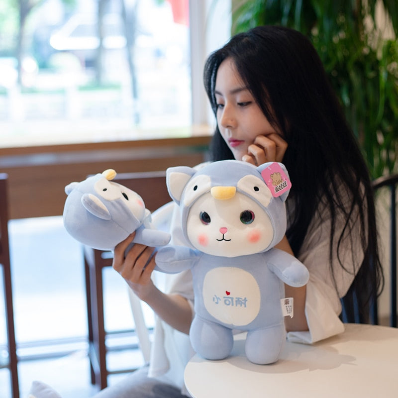 Encha sua vida de alegria e descontração ao abraçar esta pelúcia em forma de gatinho e que ainda usa uma toquinha. Ótima escolha para presentear alguém!